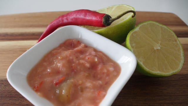 Lime and Chili Chutney Author: Julia McPhee Nutrition Information Serves: 12 Serving size: 1 Calories: 23 Fat: 1.6g Saturated fat: 0.2 Carbohydrates: 0.9g Sodium: 4mg Protein: 0.5g Recipe…